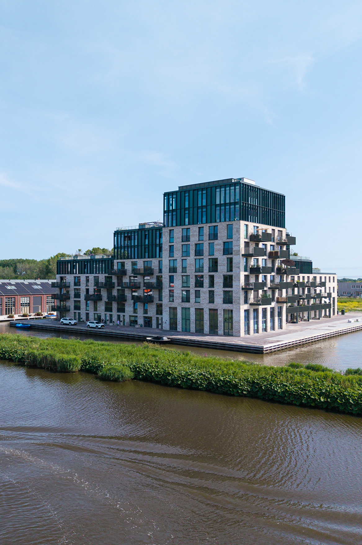Set on the waterfront of Leeuwarden’s new Middelsee district, Huis aan de Haven offers a contemporary take on dockside architecture. Designed by Powerhouse Company, the building’s expressive shape and layered composition reference the silhouettes of moored ships, with materials chosen to strengthen that narrative.
