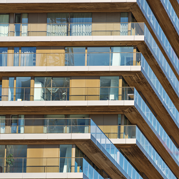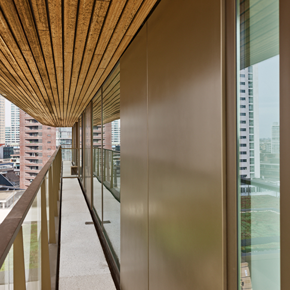 The name refers both to the large terraces on the various floors and the staggered length and width of the building. In total, there are 340 possible apartments spread over 33 floors. Some of these have been combined to create larger living spaces. It is a mix of rental and owner-occupied units. Alumet has anodized both the façade cladding and the window and door profiles in the colour AluBronze03. This involves a total of 11,000 square meters of profiles and over 3,000 square meters of composite panels.