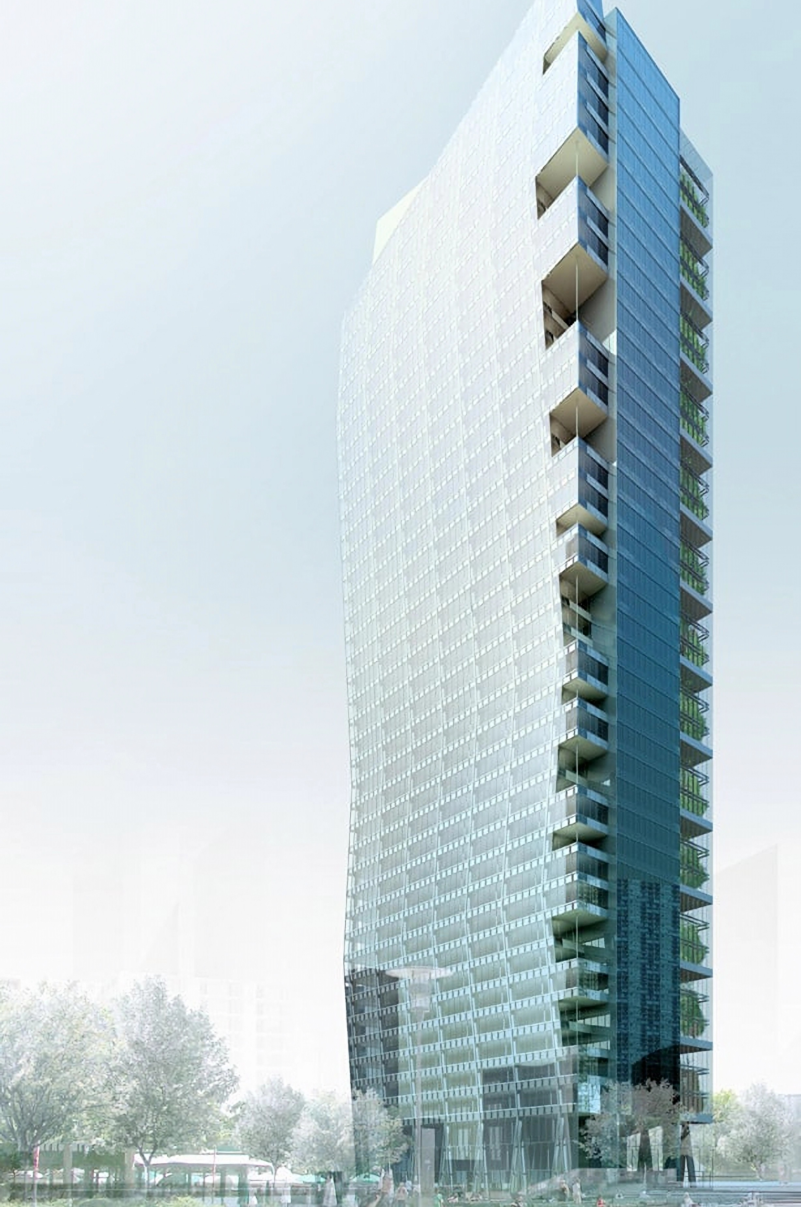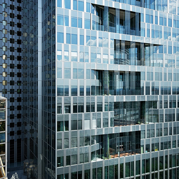 The desire for layout asymmetry with respect to the central hub led us to design three bands of differing thicknesses which are given full expression in the resulting volume through a striving for autonomy of form. Thus three bracketed plates are used, each deployed in its own way but designed to form a whole: diversity and uniqueness. The resulting tower is a new-style building the singularity of which is clearly stated without having to rise beyond 180 metres. This principle enables a response to the specific context of the tower at its base by connecting it to the esplanade and the new gardens below. It also makes it possible to manage the tower’s contact with the sky by using an original top which underlines the breaking down of the volume into three parts. The “double skin” facade offers numerous benefits: plenty of natural daylight floods into the offices, but they are also protected by an integrated sun shade system. Energy consumption is thereby cut both for lighting and air-conditioning. The facade materials used are: glass for the window frames and sills, and aluminium for the joinery and opaque components of the facades.